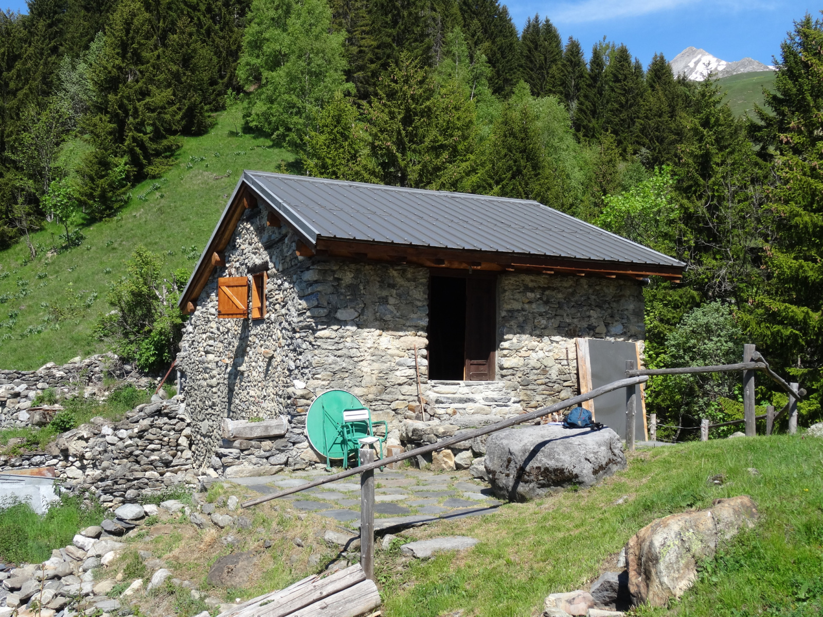 le toit est neuf, le chalet à l'eau ( captage sur une source ou ruisseau à proximité) non potable, pas d'éléctricité, chauffage pôèle à bois